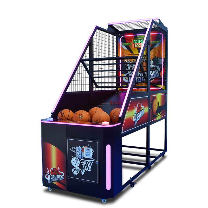 家旁边开了家游戏店, 里面就有这样的投篮机, 我和12岁的大儿子都比较喜欢打篮球, 所以去玩的最多的就是这个投篮机.